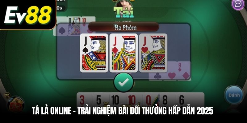 Tá lả online đang dần trở thành lựa chọn quen thuộc trong cộng đồng yêu thích cá cược trực tuyến tại Việt Nam. Tại EV88 hội viên không chỉ được trải nghiệm giao diện nền màu xanh navy dễ thao tác, mà còn tham gia những ván bài kịch tính với cơ hội đổi thưởng thành tiền mặt thật. Với tốc độ xử lý giao dịch trung bình chỉ từ 2–3 phút, anh em có thể an tâm giải trí và học hỏi thêm nhiều chiến thuật để tăng trải nghiệm cũng như gia tăng phần thắng trong mỗi lần đặt cược.